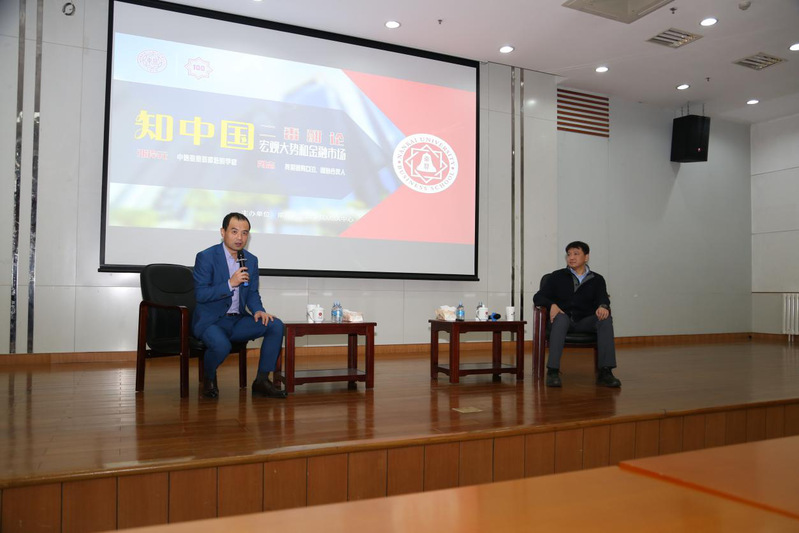 2019年12月8日晚18:30,由南开大学商学院专业学位教育中心主办的《知中国 二番酣论--宏观大势和金融市场》讲座圆满举办。来自南开大学的两位校友,中信建投首席经济学家张岸元博士和英博投资CEO冯志先生在南开大学商学院小报告厅给我们带来了一场别开生面的智慧碰撞。南开大学商学院在校MBA同学近300人现场倾听,全场座无虚席。时值期末考试期间,同学们在紧张的期末考试复习之余早早便来到会场,讲座还没开始座位便早已捉襟见肘,现场两侧更是支起了几十个临时座椅,有些同学甚至全程站立,足以体现这场对话的精彩与火爆。