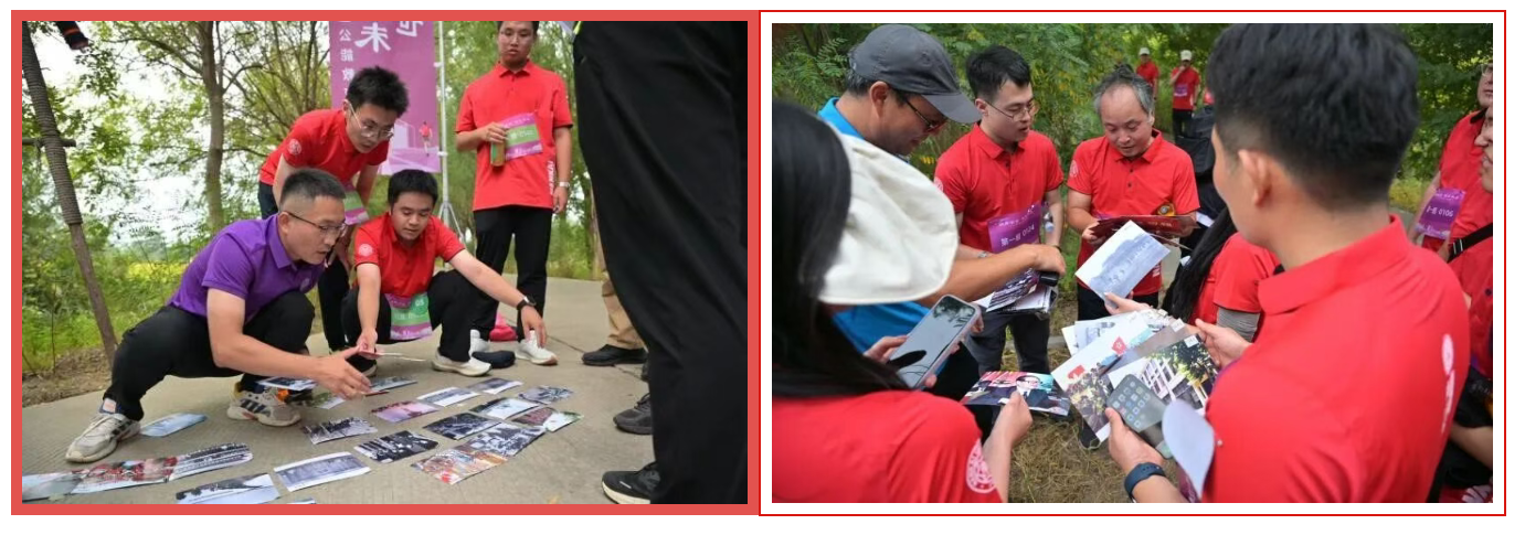 途中最具特色的“红色长廊党史回顾闯关”环节,要求每队80%以上成员参与——5分钟预习后,2分钟内完成30张党史卡片排序,正确15张即可通关。新生们围坐讨论、分工协作,在紧张的竞技中重温红色历史,将“知中国,服务中国”的宗旨融入实践。
