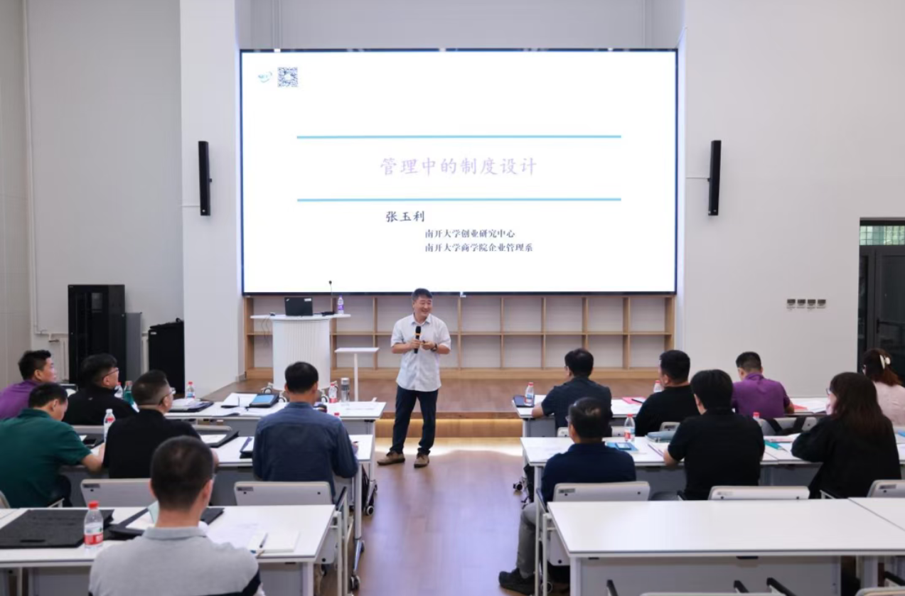 张玉利教授以《管理中的制度设计》为题,聚焦“制度”这一管理底层逻辑,引导EMBA学员突破经验局限,以“制度逻辑”重塑“组织体系”。张玉利教授指出,制度不仅是约束机制,更是激发组织活力的关键。课程深入剖析科学管理原理与人性行为规律,帮助学员重新审视激励与领导问题,强化前瞻性、系统性的制度设计能力。通过融合经典管理理论与当代管理挑战,张玉利教授鼓励学员跳出职能局限,以顶层思维把握制度与行为的动态互动,课程为企业在复杂环境中构建制度基础提供思想先导与路径支持。